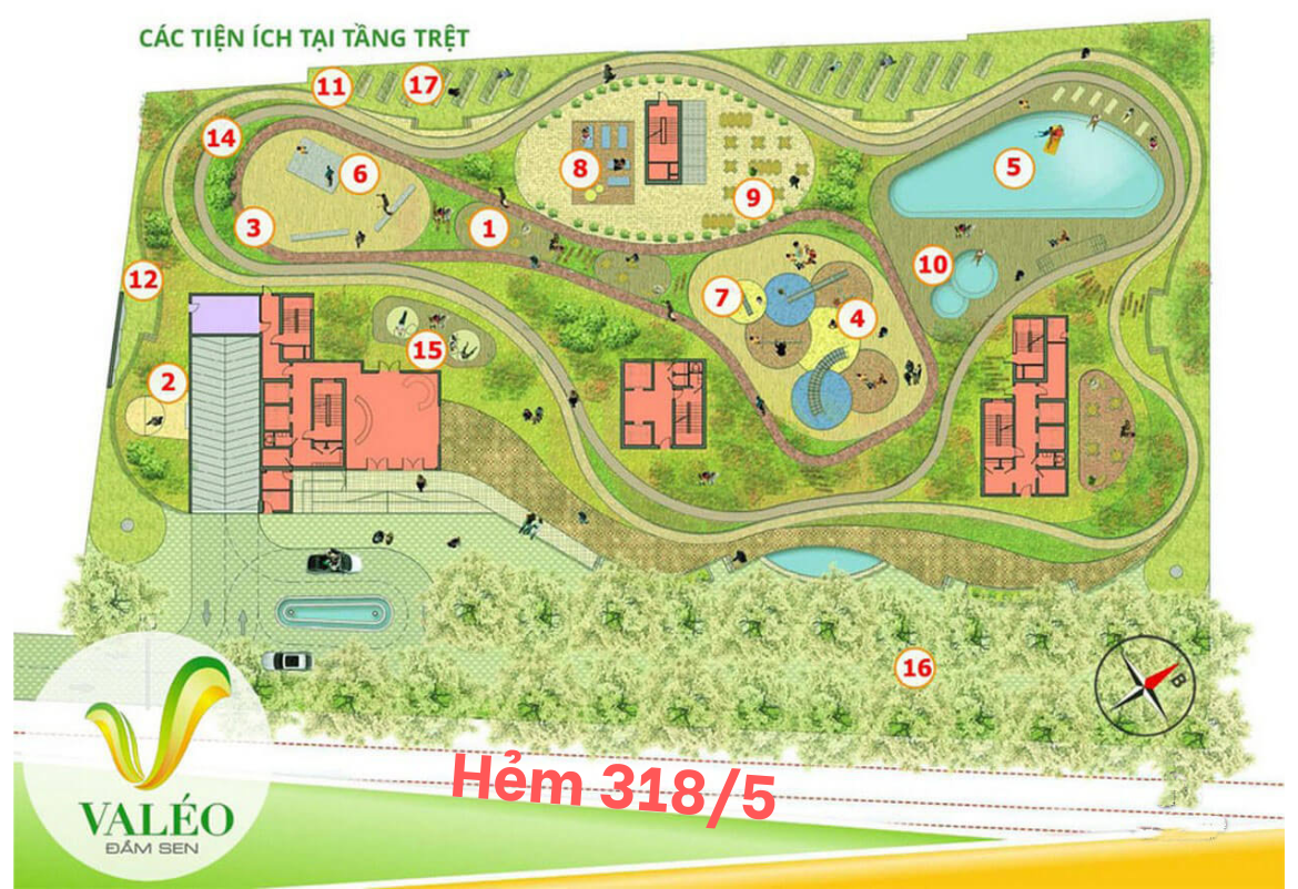 Valéo Đầm Sen sở hữu vị trí "ẩn mình" chiến lược: nằm trên đường Trịnh Đình Trọng – tuyến đường nội khu yên tĩnh, nhưng chỉ cách các trục đường huyết mạch vài trăm mét. Đặc điểm này tạo ra môi trường sống biệt lập, tránh được tiếng ồn và khói bụi từ đường lớn, đặc biệt phù hợp với gia đình có người già và trẻ nhỏ.